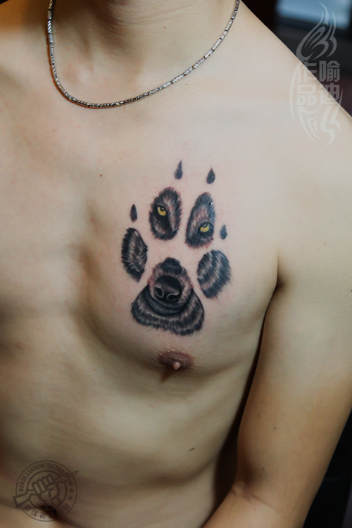 武汉最好纹身店打造的胸口爪印狼头纹身作品