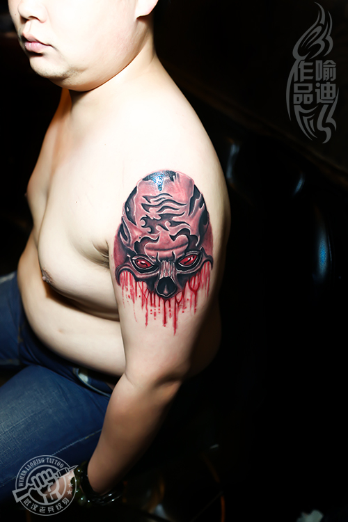武汉最好纹身店打造的大臂3D骷髅纹身作品