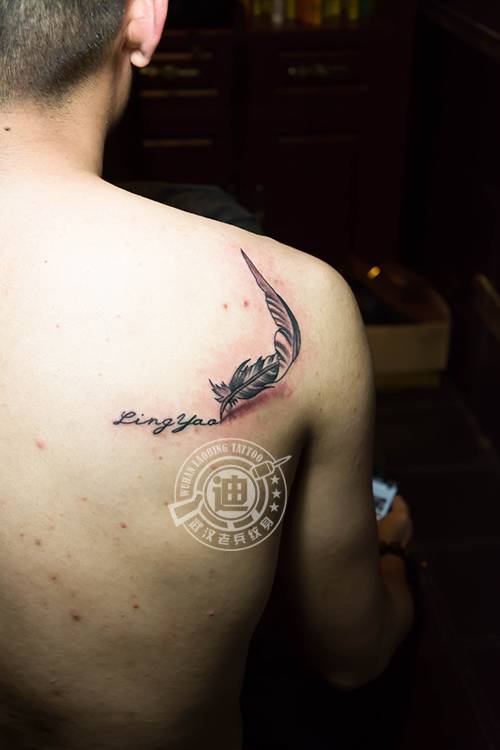 武汉最好纹身店打造的羽毛文字纹身作品