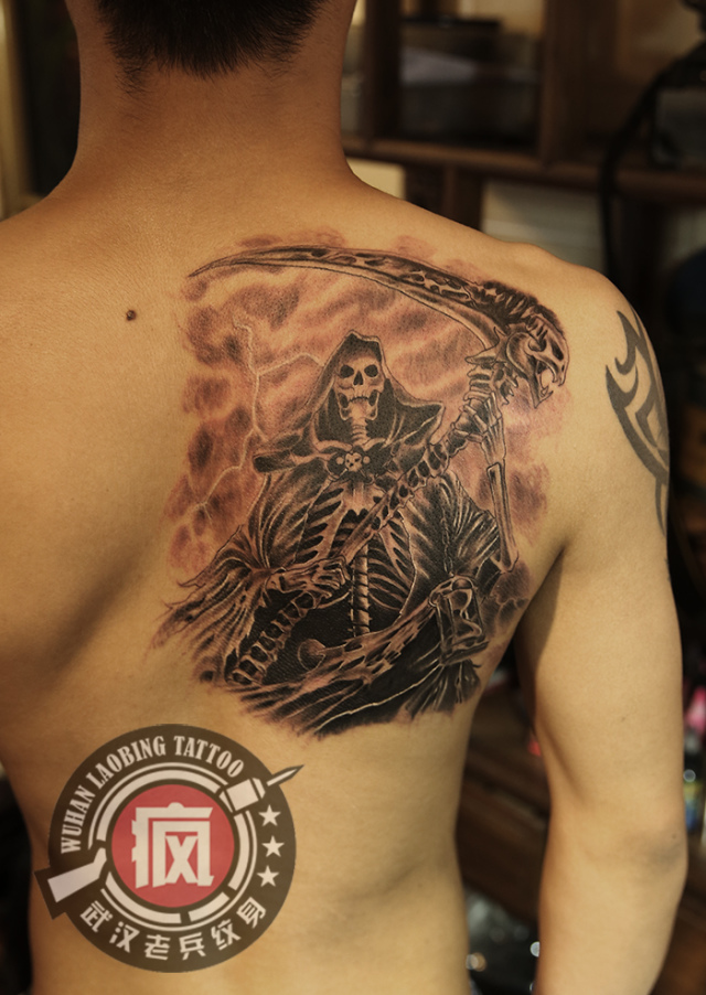 武汉最好纹身店打造的后背死神纹身作品