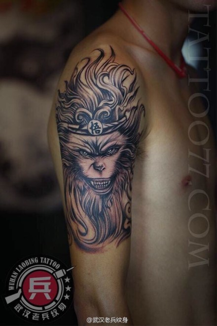 武汉最好纹身店打造的超酷齐天大圣孙悟空纹身作品