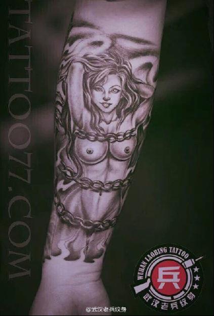 小花臂女郎纹身作品