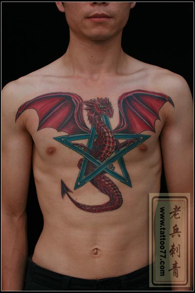 心脏手术疤痕遮盖——重彩欧式翼龙纹身