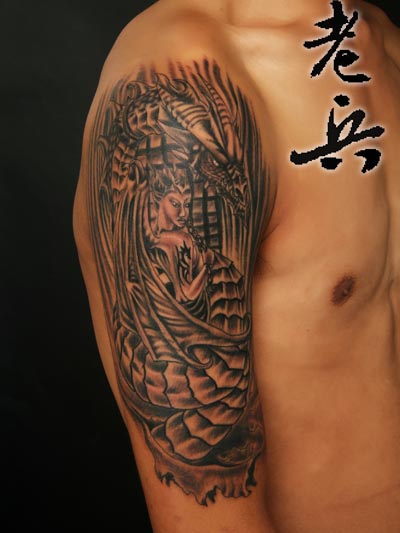 武汉纹身店:欧美龙与美女纹身tattoo