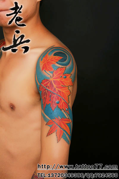 武汉老兵纹身:大臂枫叶纹身(tattoo)