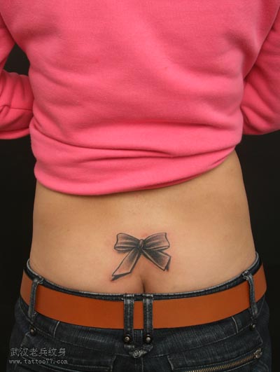武汉纹身店:美女腰部蝴蝶结纹身