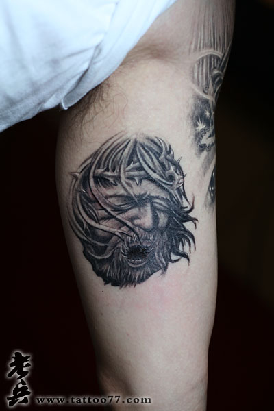 武汉纹身店:经典的手臂耶稣纹身恢复后效果