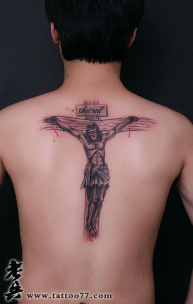 武汉纹身店:背部耶稣受难纹身