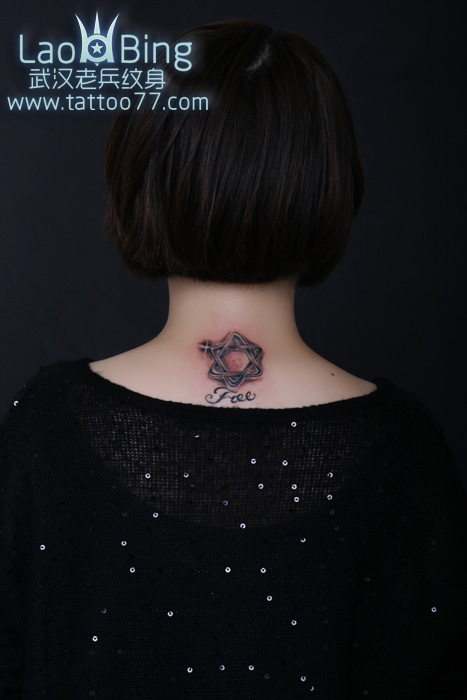 美女颈部六芒星纹身图案作品