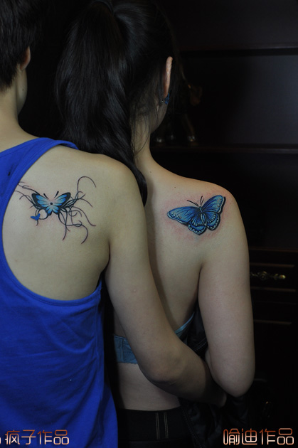 武汉最好纹身店打造的情侣背部蝴蝶纹身图案作品