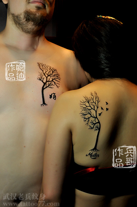 武汉最好纹身店打造的情侣图腾树纹身作品