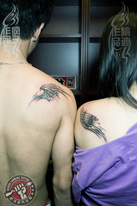 武汉最好纹身店打造的情侣翅膀纹身作品