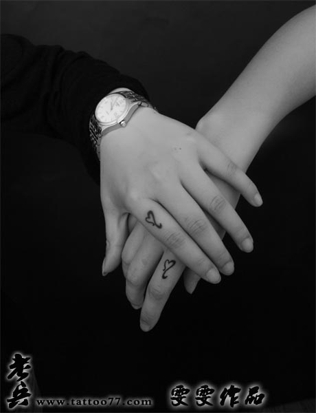 武汉纹身店:情侣手指爱心纹身