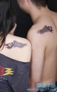 武汉专业纹身店:肩部情侣爱心翅膀纹身图案作品