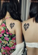 武汉哪里纹身最好,老兵刺青出品的姐妹犹如情侣背部爱心龙纹身