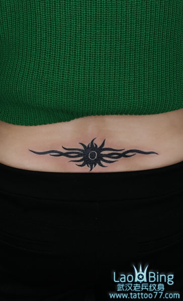 武汉专业纹身店:美女腰部图腾太阳腰花纹身图案作品