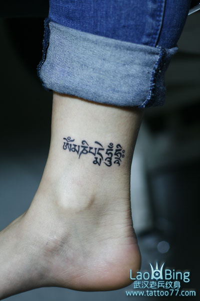 武汉专业纹身店:腿部藏文六字真言纹身图案作品