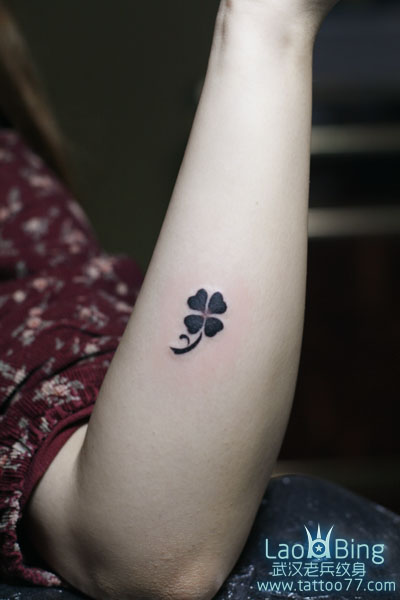 武汉最好纹身店:手臂四叶草纹身图案作品