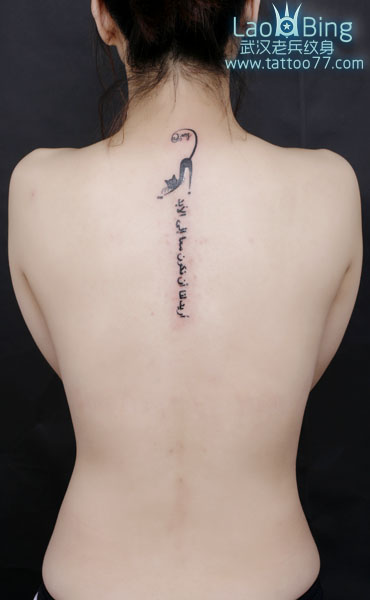 武汉专业纹身店:美女颈部猫咪文字纹身图案作品