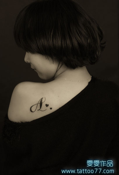 武汉最好纹身店:美女背部文字爱心纹身图案作品