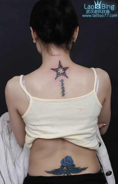 武汉纹身店:颈部图腾五角星纹身图案作品