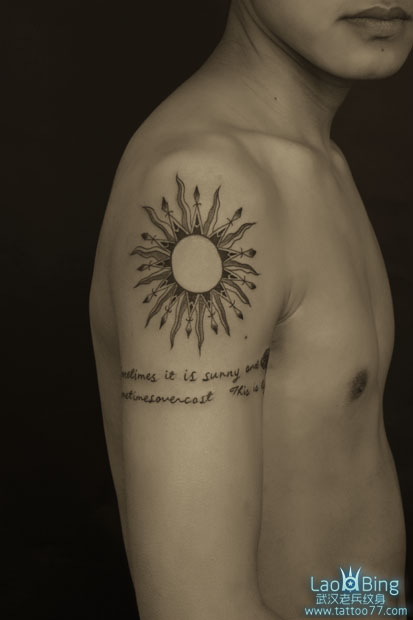 武汉专业纹身店:酷酷的大臂太阳纹身图案作品