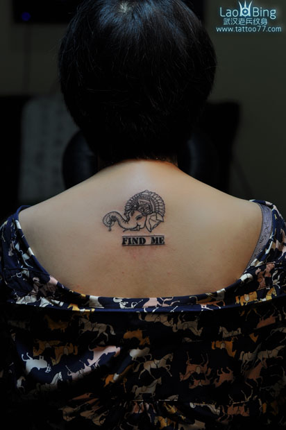 武汉专业纹身店:颈部象神文字纹身图案作品