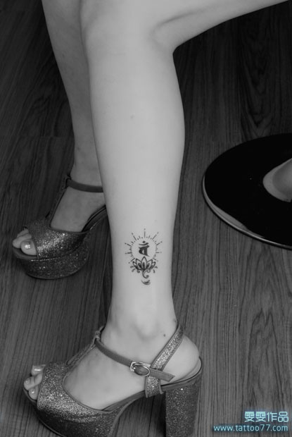 武汉专业纹身店:美女腿部梵文莲花纹身图案作品