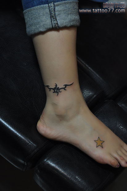 武汉专业纹身店:腿部图腾五角星纹身图案作品