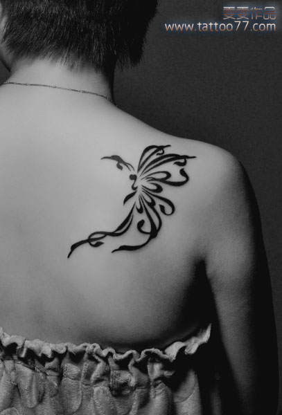 武汉专业纹身店:时尚的后背图腾蝴蝶纹身图案作品