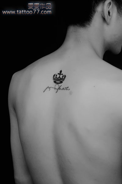 武汉专业纹身店:背部皇冠文字纹身图案作品