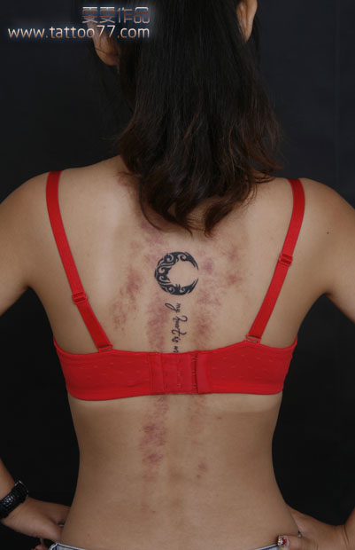 武汉专业纹身店:时尚的背部图腾月亮文字纹身图案作品