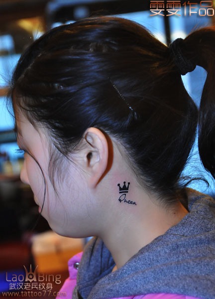 武汉专业纹身店:时尚的耳部皇冠文字纹身图案作品