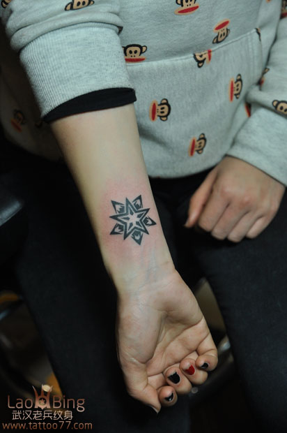 小清新的背部雪花纹身由武汉最好纹身店老兵刺青打造