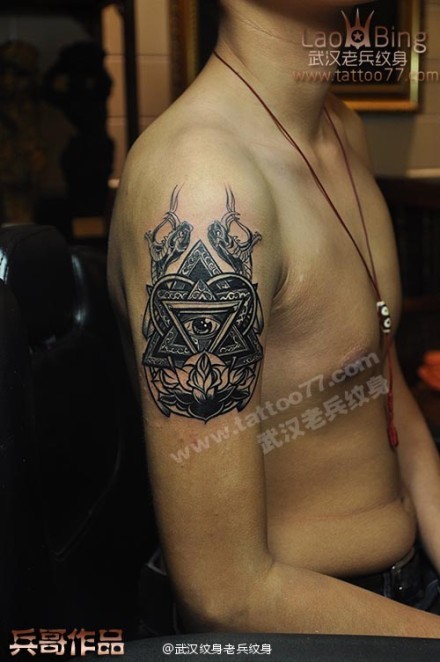 精致的大臂上帝之眼纹身由武汉最好纹身店老兵打造