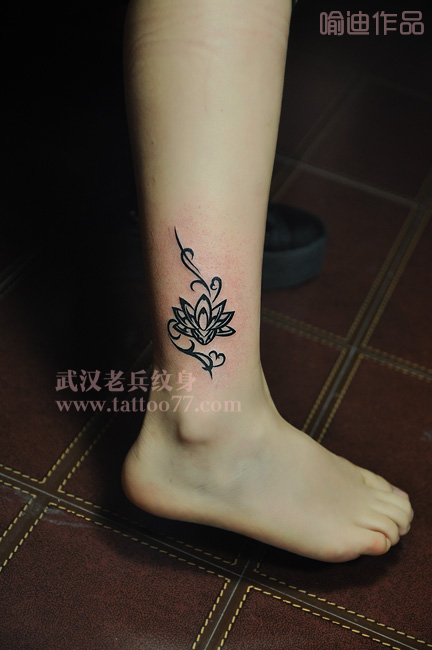 腿部图腾莲花纹身由武汉最好纹身店打造