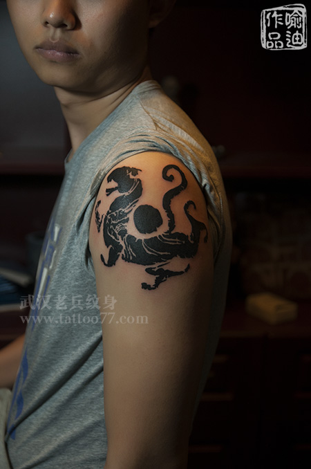 帅气的土家族标志,四神兽白虎纹身,由武汉最好纹身店出品