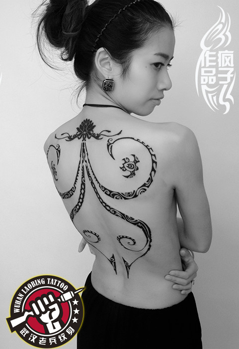 武汉最好纹身店打造的美女后背图腾纹身作品