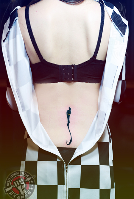 武汉最好纹身店为性感美女打造的腰部图腾猫纹身作品