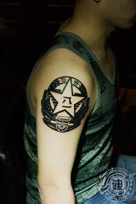 武汉最好纹身店打造的军徽纹身作品