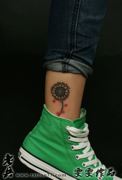 武汉纹身店:美女腿部向日葵纹身