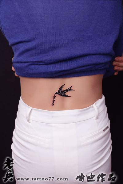 武汉纹身店:美女腰部香奈儿燕子纹身