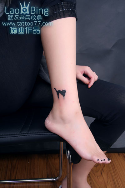 武汉纹身店:时尚的美女腿部图腾猫纹身