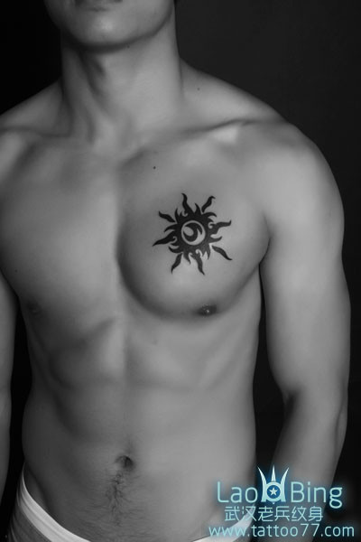 前胸纹身 图腾纹身 太阳纹身 前胸图腾纹身 前胸太阳纹身 图腾太阳纹身