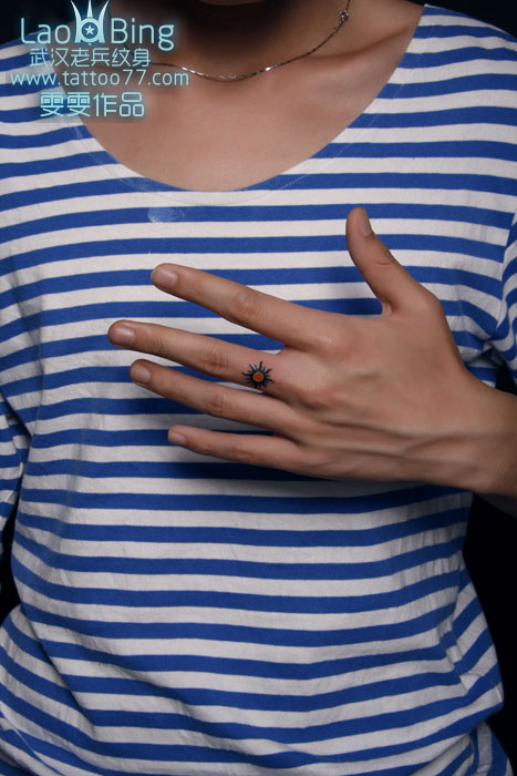 武汉纹身店:时尚的手指图腾太阳纹身作品