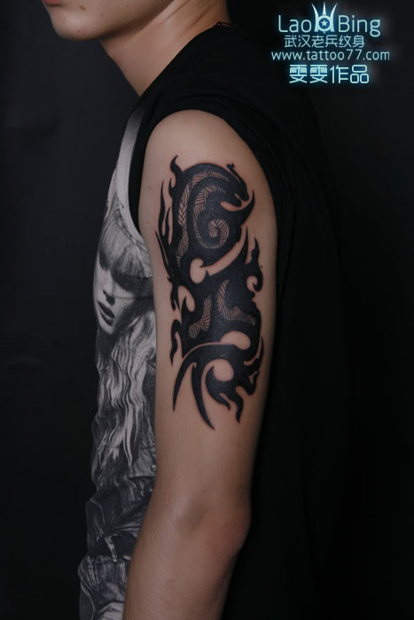 武汉纹身店为来自汉口纹身爱好者打造的大臂图腾纹身图片作品
