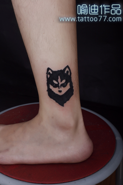 武汉纹身店:腿部哈士奇纹身图案作品