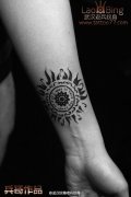 手臂超精致图腾太阳纹身由武汉最