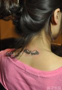美女颈部翅膀纹身由武汉最好纹身