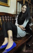 美女的腿部图腾四叶草纹身由武汉